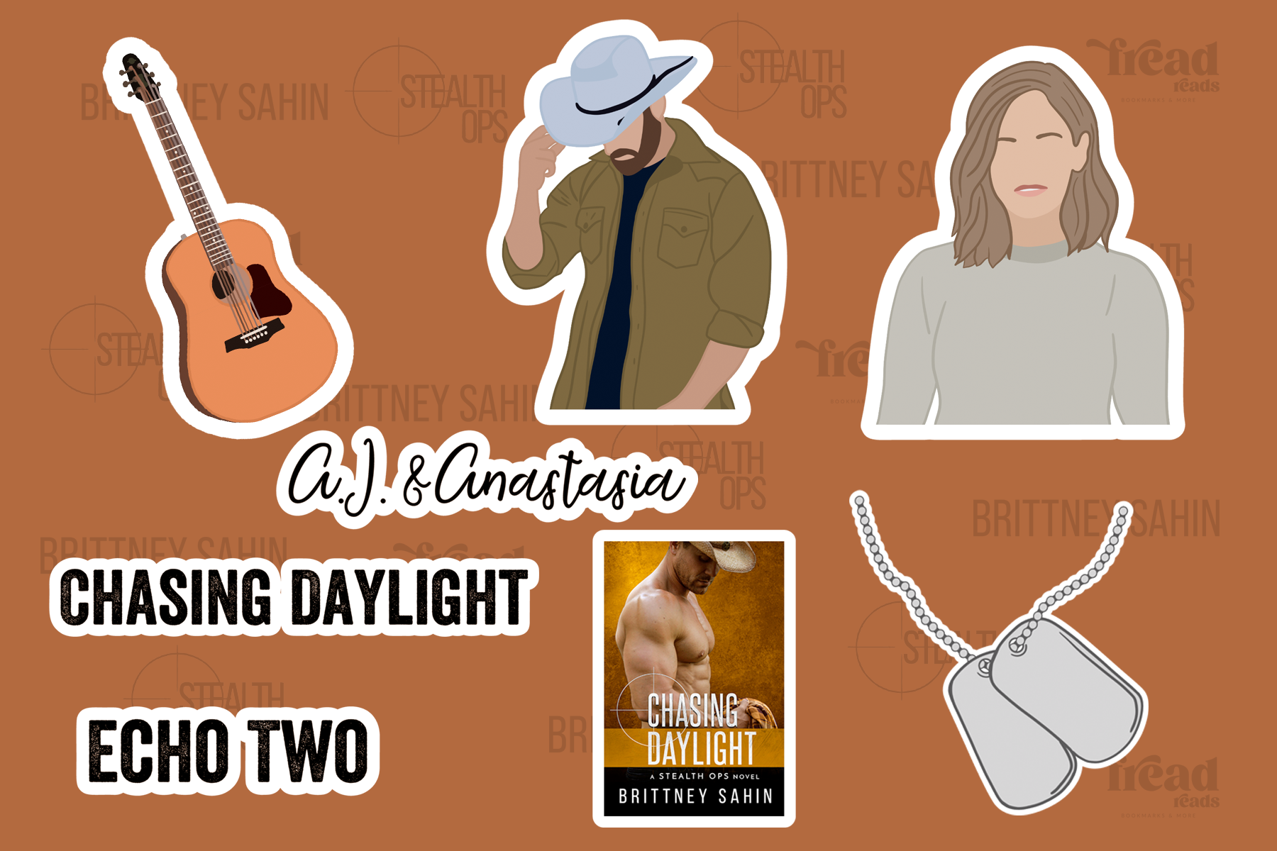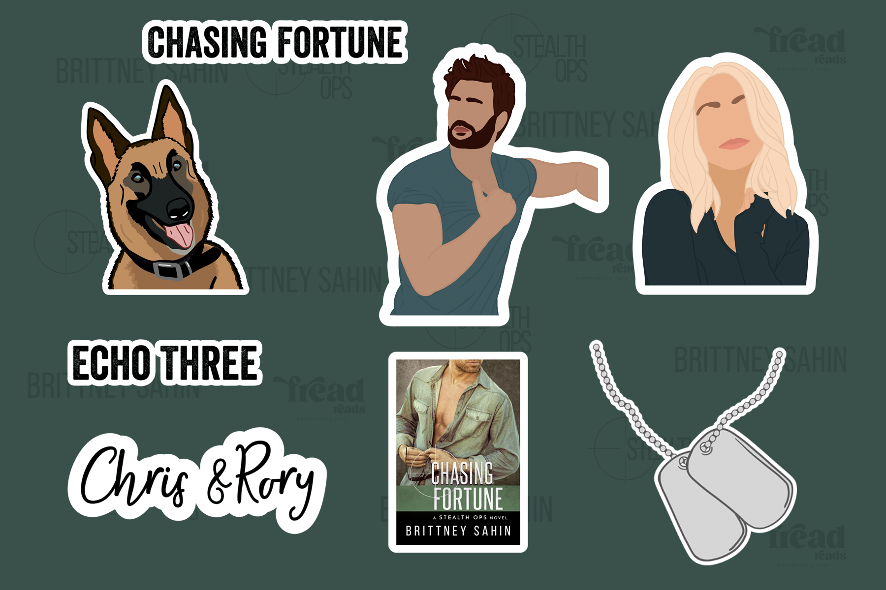 Custom stickers for Echo Team books: Chasing the Knight, Chasing Daylight, Chasing Fortune, Chasing Shadows, and Chasing the Storm